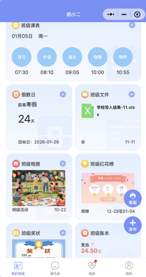 班级小精灵:实现双向高效沟通,学生与家长可直接留言,无需老师转达,减轻中间传达压力;接送播报功能让孩子听到名字播报后再离校,优化校园接送管理,避免学生长时间等候。